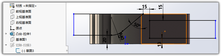 顶面上绘制草图,把这个圆弧槽口切除掉。