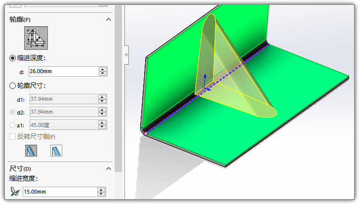 轮廓成型有两种方式:缩进深度和轮廓尺寸