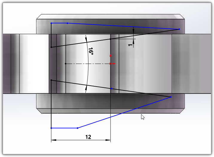 拉伸切除。方向选择上上一步绘制的4度斜线。从外向内切除。