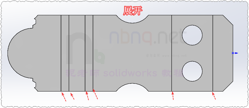 展开的钣金可以帮助你更好的进行特征构建,如在平板上打孔,阵列,定位特征位置等。